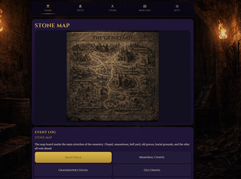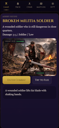 A dark fantasy text-based adventure with puzzles, combat, music, videos, and images.